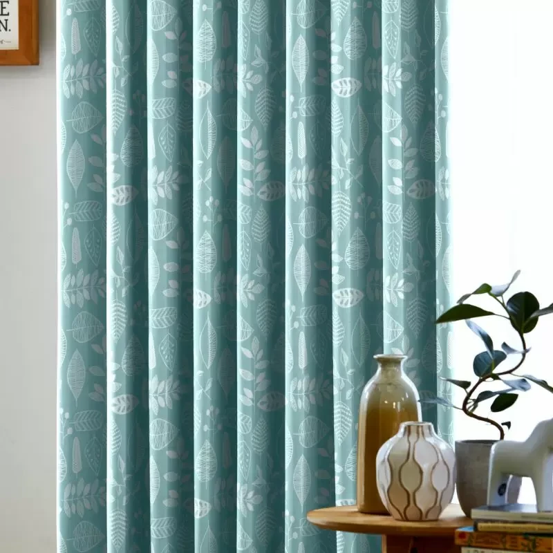 手描きスケッチ風に様々な形の葉っぱを描いた、カジュアルで北欧ライクな印象の遮光プリントドレープです。お部屋の印象をパッと明るくしてくれる高彩度のイエローとターコイズブルー、ベーシックで色なじみの良いベージュとグレーの4色展開。