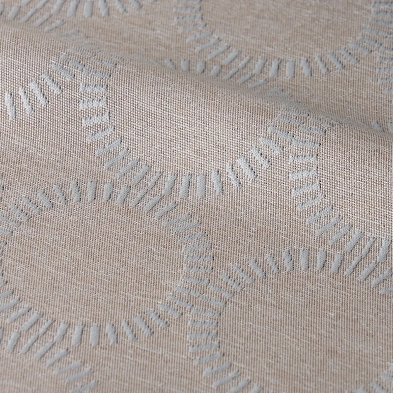 温かみのあるタッチのサークル織り模様が連なった、シンプルで飽きの来ないデザインが魅力の小紋柄シリーズ遮光ドレープです。織り?染めまでの工程をすべて日本国内で行っており、品質は折り紙付きです。