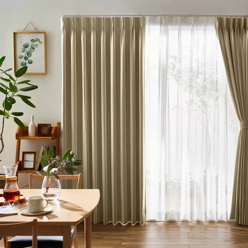 形状安定加工を施すことにより、カーテンの裾が広がらず、 すっきりとまとまり、美しいウェーブを演出します(洗濯5回程度まで効果が持続)。