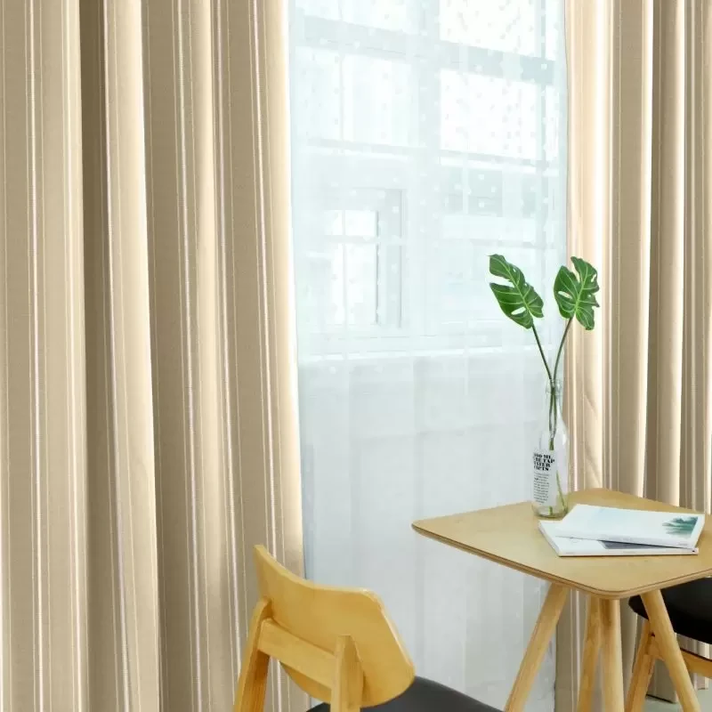 リボンテープで引かれたかの様なストライプと糸の光沢がキラキラ光るストライプが印象的な遮光3級のカーテンです。程よい高級感がリビングなどに使いやすいです。