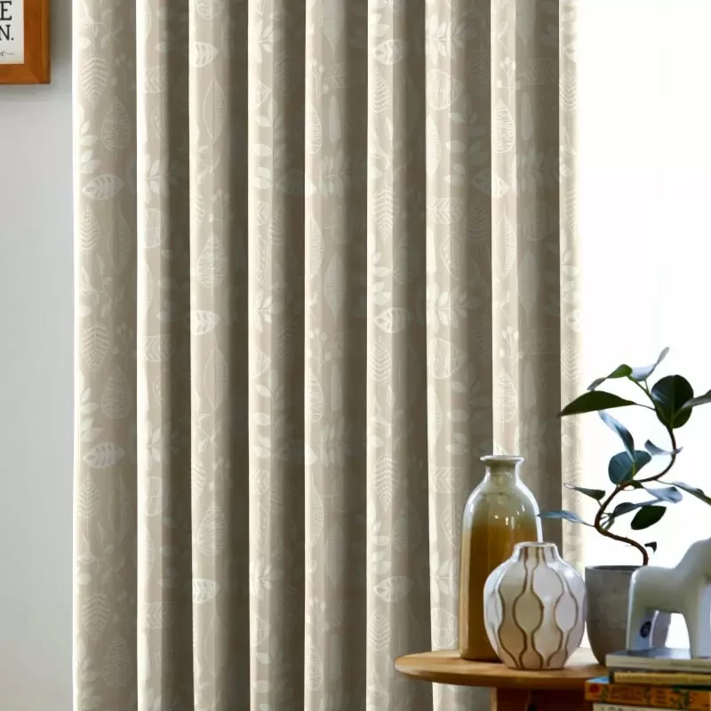 手描きスケッチ風に様々な形の葉っぱを描いた、カジュアルで北欧ライクな印象の遮光プリントドレープです。お部屋の印象をパッと明るくしてくれる高彩度のイエローとターコイズブルー、ベーシックで色なじみの良いベージュとグレーの4色展開。