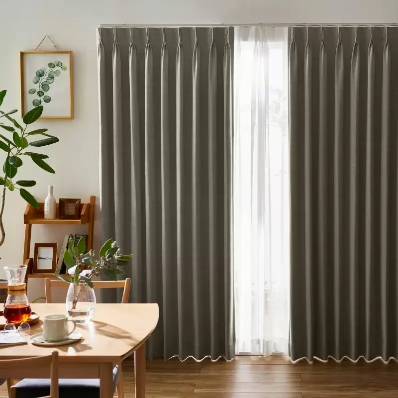 形状安定加工を施すことにより、カーテンの裾が広がらず、 すっきりとまとまり、美しいウェーブを演出します(洗濯5回程度まで効果が持続)。