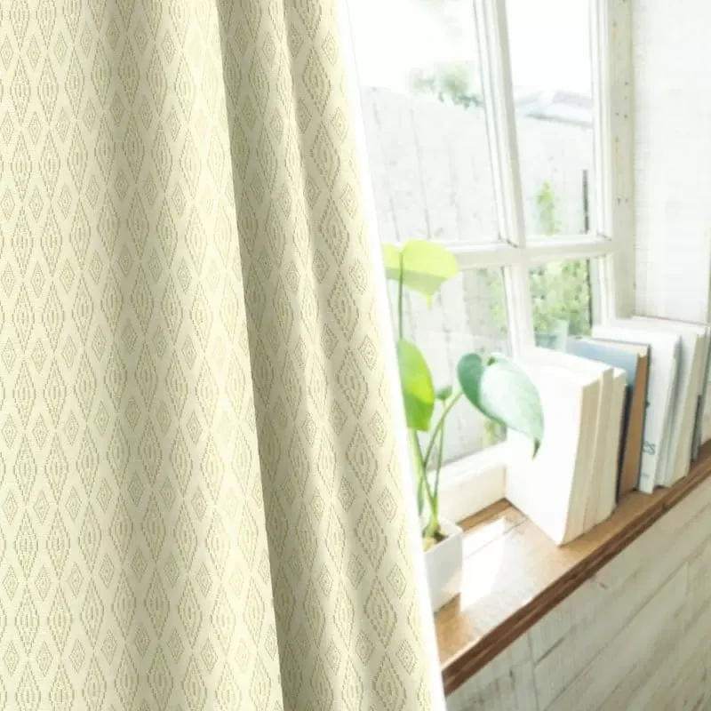 ほんのりトライバル(民族)テイストをまとった、ナチュラルな印象のダイヤ幾何織柄ドレープ。インテリアを程よくカジュアルダウンし、小慣れ感を演出してくれるアイテムです。